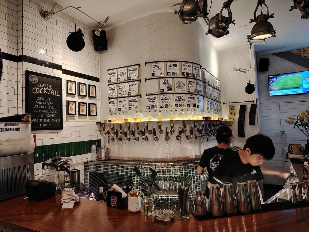 Nằm trên con phố sầm uất bậc nhất Sài Gòn, 7 Bridges Craft Beer Đông Du là điểm đến không thể bỏ qua cho những tín đồ bia thủ công. Đây không chỉ là nơi để thưởng thức bia tươi hảo hạng, mà còn mang đến một không gian chill lý tưởng, phù hợp cho những buổi gặp gỡ bạn bè hoặc thư giãn sau ngày dài làm việc.
