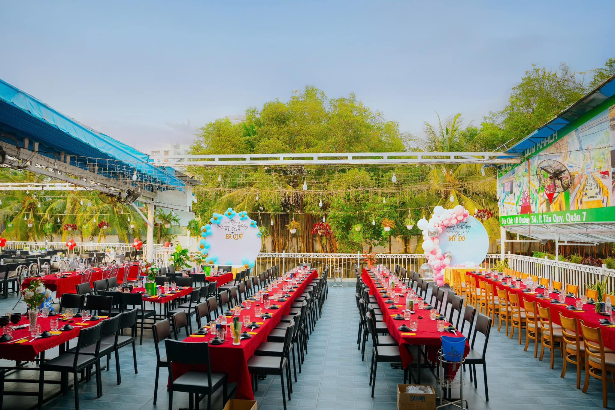 ✔ Sức chứa lên đến 300 khách: Bao gồm khu vực ngoài trời và phòng máy lạnh, phù hợp cho các sự kiện lớn.