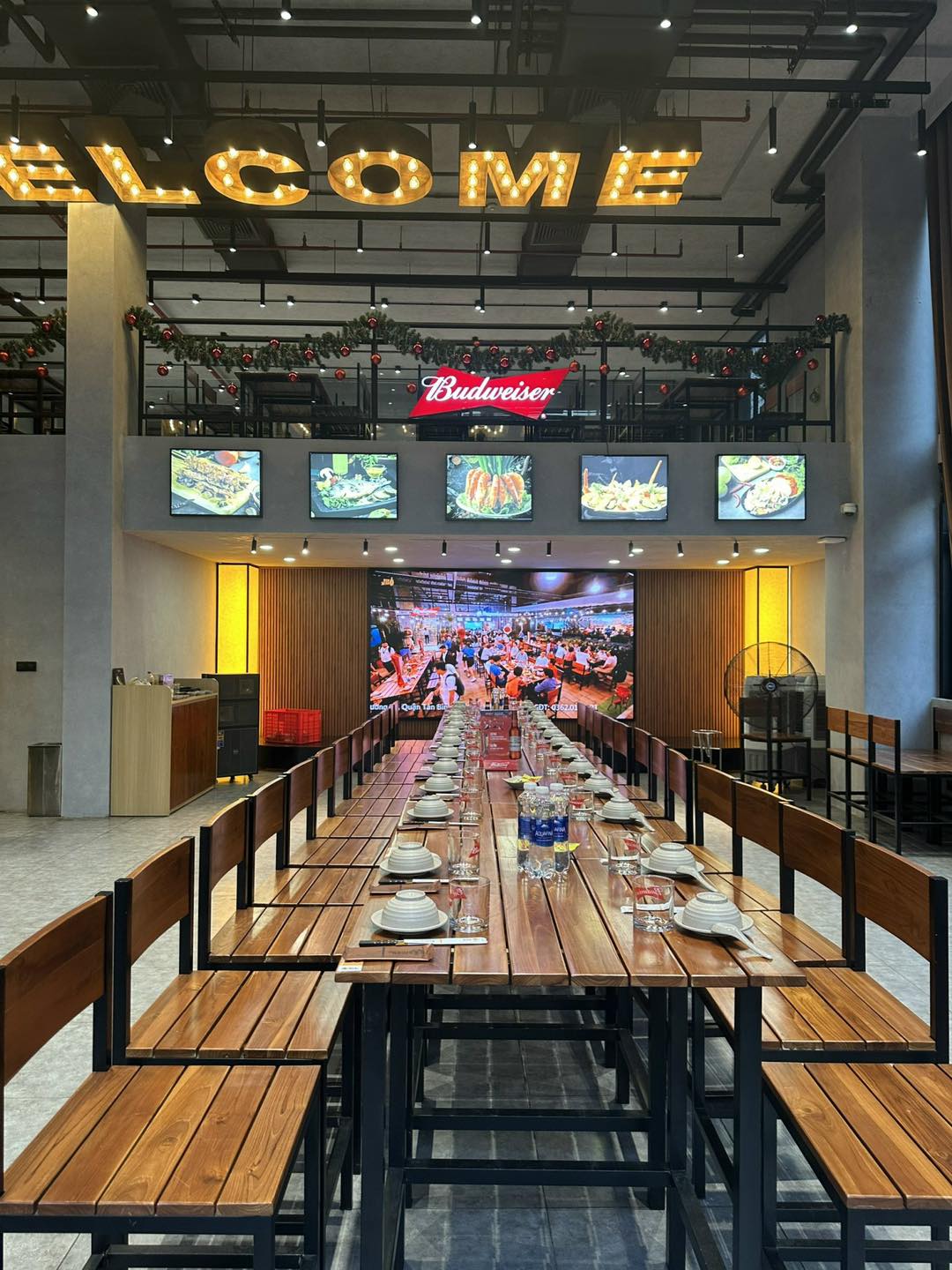 Thực đơn đa dạng, bao gồm hải sản, đồ nướng, các món nhậu đặc sắc kết hợp cùng bia tươi.
