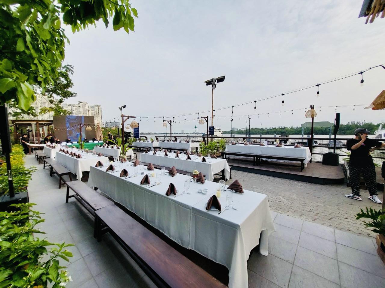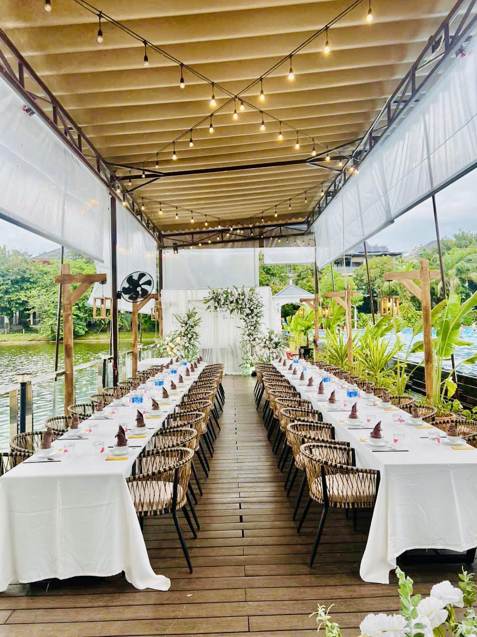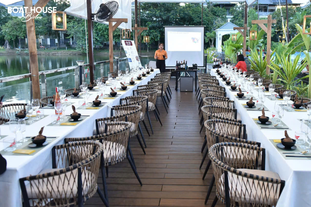 Boat House Bistro có sức chứa lên đến 150 khách, đáp ứng tốt các buổi họp mặt gia đình, tiệc công ty hoặc hội thảo nhỏ. Không gian có thể linh hoạt thay đổi bố trí để phù hợp với nhu cầu của từng sự kiện, từ tiệc đứng cho đến sắp xếp bàn ăn thân mật. Đặc biệt, nhà hàng được trang bị đầy đủ tiện nghi như hệ thống âm thanh, ánh sáng và máy chiếu, giúp đảm bảo mọi sự kiện diễn ra một cách chuyên nghiệp.