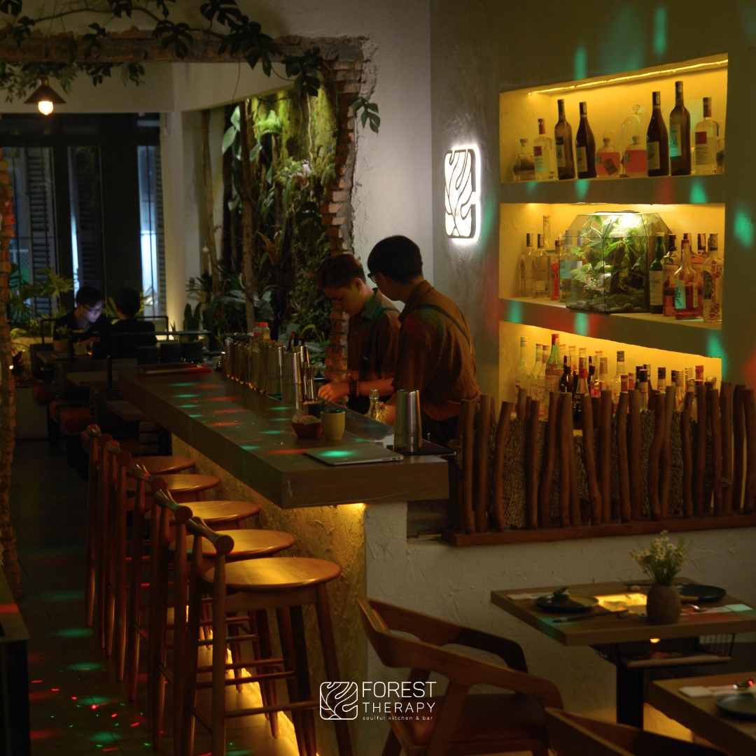 Tọa lạc tại 76 Nguyễn Thái Bình, Phường Nguyễn Thái Bình, Quận 1, TP. Hồ Chí Minh, Forest Therapy Kitchen & Bar là một điểm đến độc đáo dành cho những ai yêu thích không gian xanh mát kết hợp với ẩm thực tinh tế. Với phong cách thiết kế thiên nhiên hòa quyện cùng ánh sáng dịu nhẹ, nơi đây mang lại cảm giác thư giãn tuyệt đối giữa trung tâm thành phố sôi động.