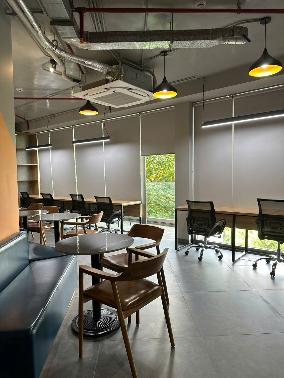 - Bàn ghế rộng rãi, thoải mái, thích hợp cho cả làm việc cá nhân và nhóm.