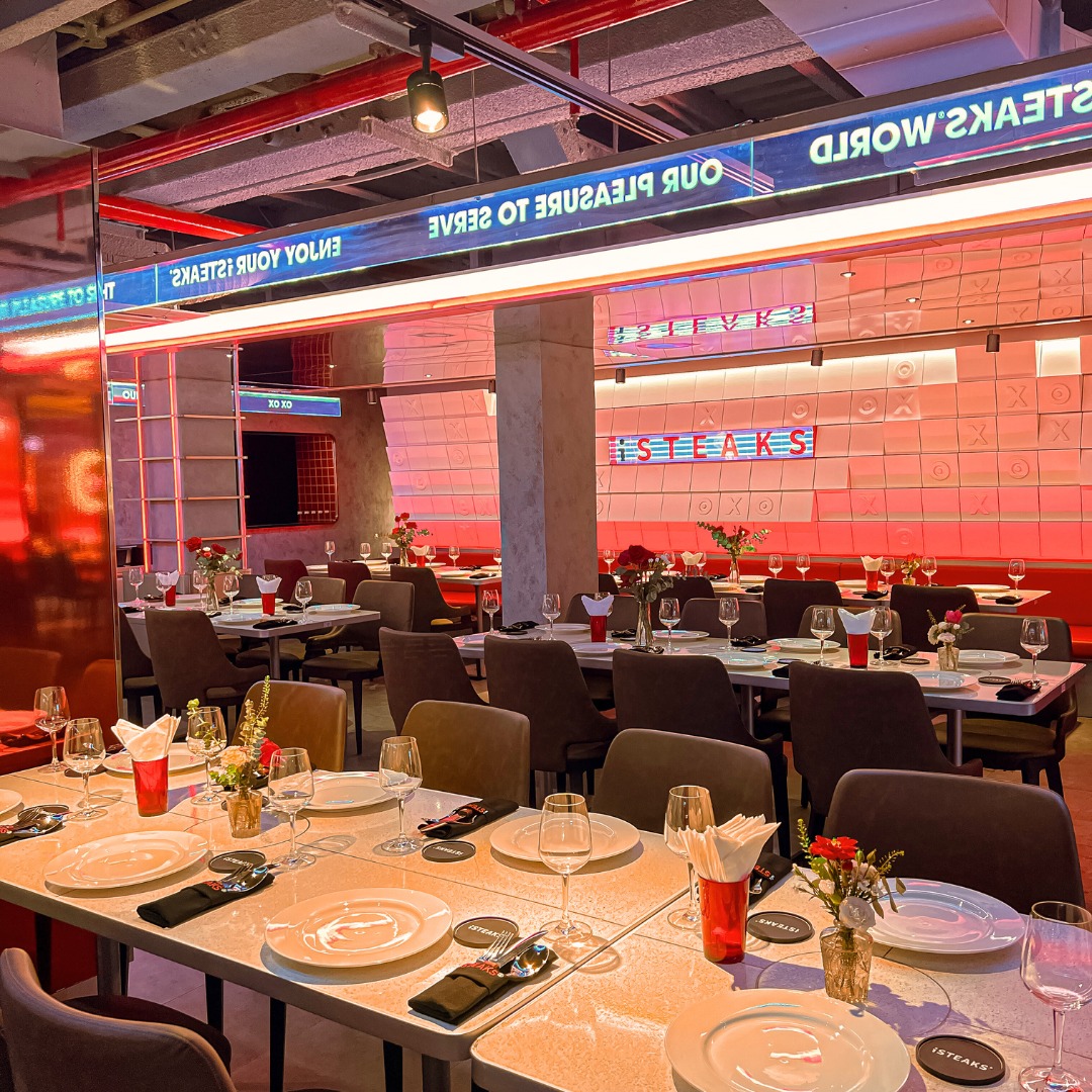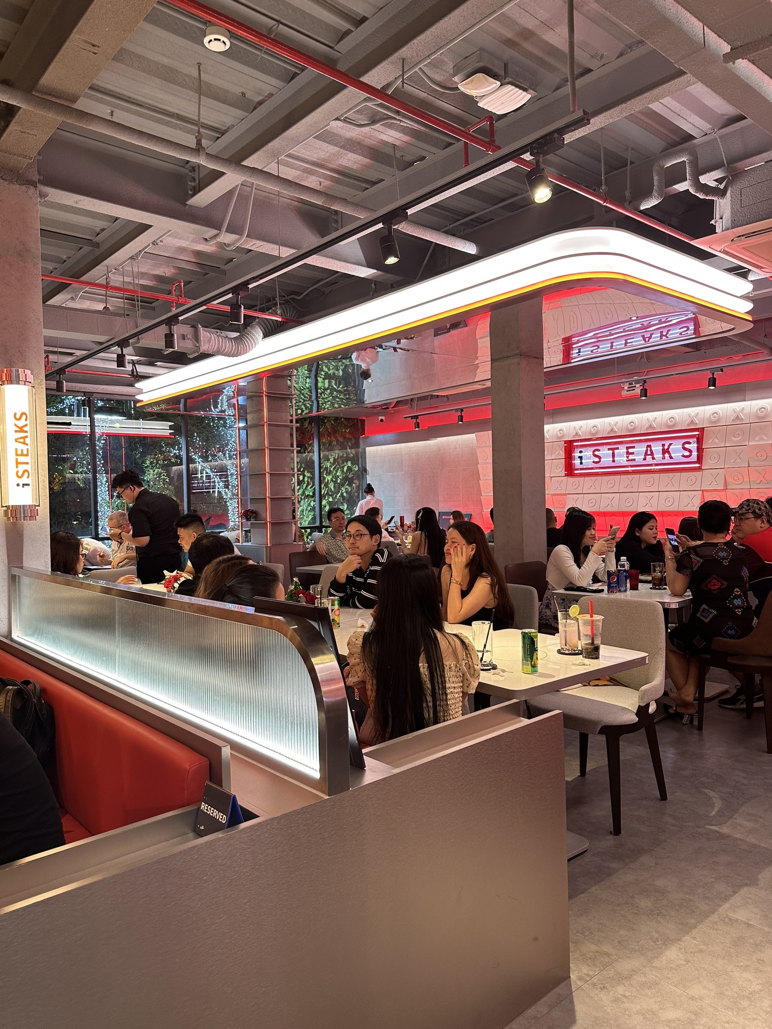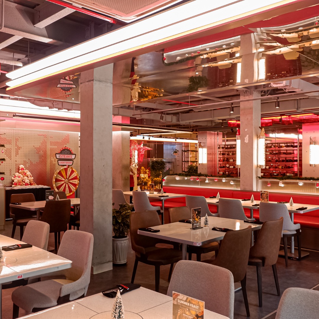 iSTEAKS tọa lạc tại Saigon Garden – khu phức hợp ẩm thực và giải trí nổi tiếng tại phố đi bộ Nguyễn Huệ. Nhà hàng có thiết kế sang trọng, tinh tế nhưng vẫn ấm cúng, tạo cảm giác thoải mái khi thưởng thức món ăn: