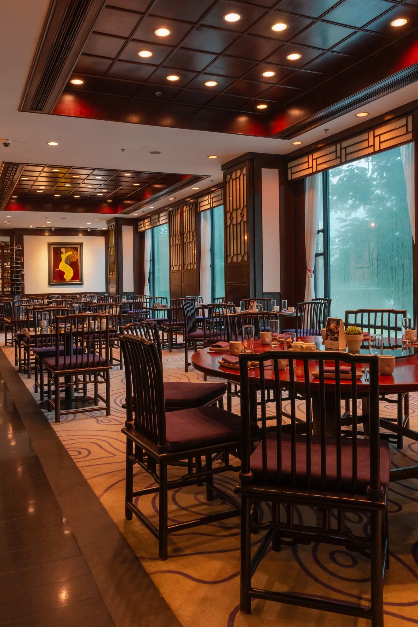• Thiết kế hiện đại pha lẫn nét cổ điển Trung Hoa, với nội thất gỗ cao cấp, đèn lồng trang trí và không gian ấm cúng.