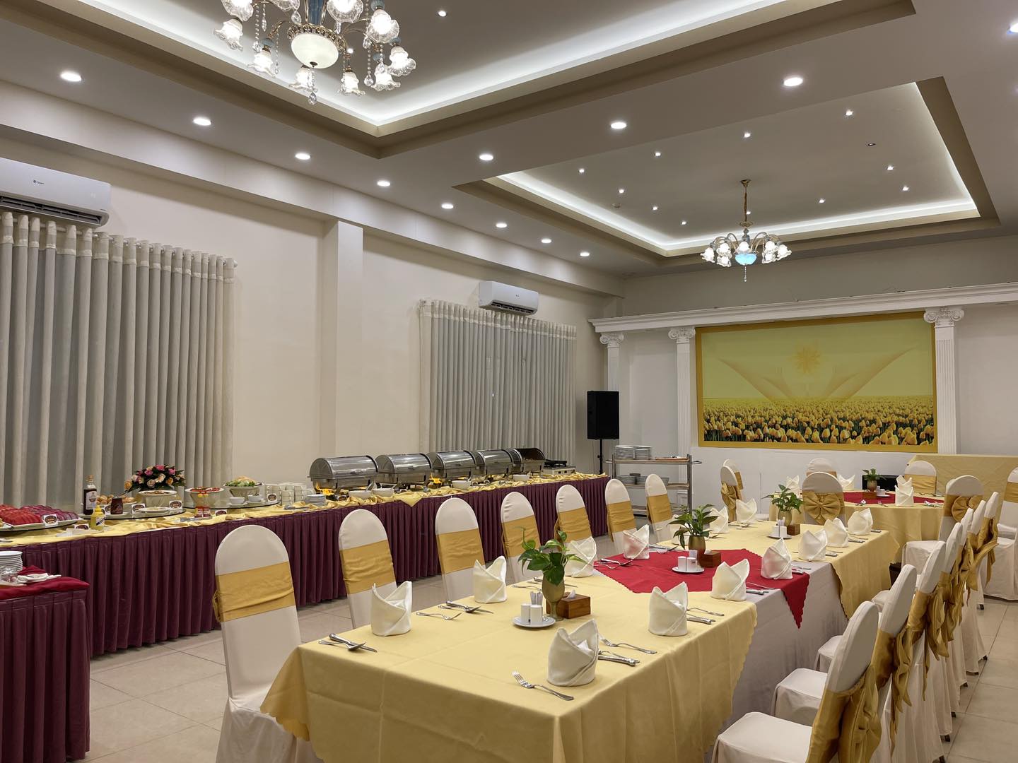 - Sảnh tiệc lớn: Đáp ứng sự kiện có quy mô lên đến 1.000 khách, thích hợp cho hội nghị doanh nghiệp, hội thảo chuyên đề hoặc tiệc cưới hoành tráng.