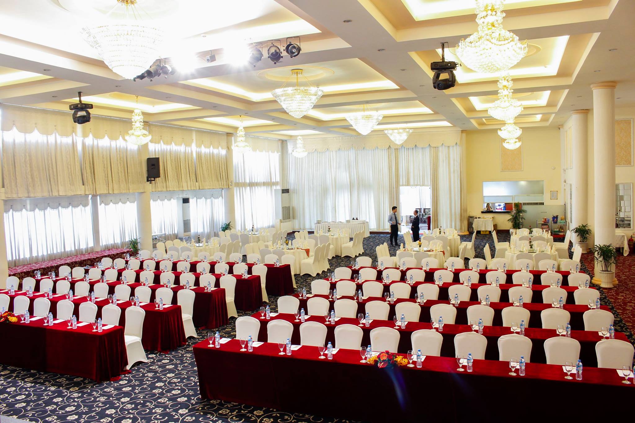 - Sảnh hội nghị và tiệc cưới: Có sức chứa từ 200 – 600 khách, được trang bị đầy đủ hệ thống âm thanh, ánh sáng, màn hình LED hiện đại.