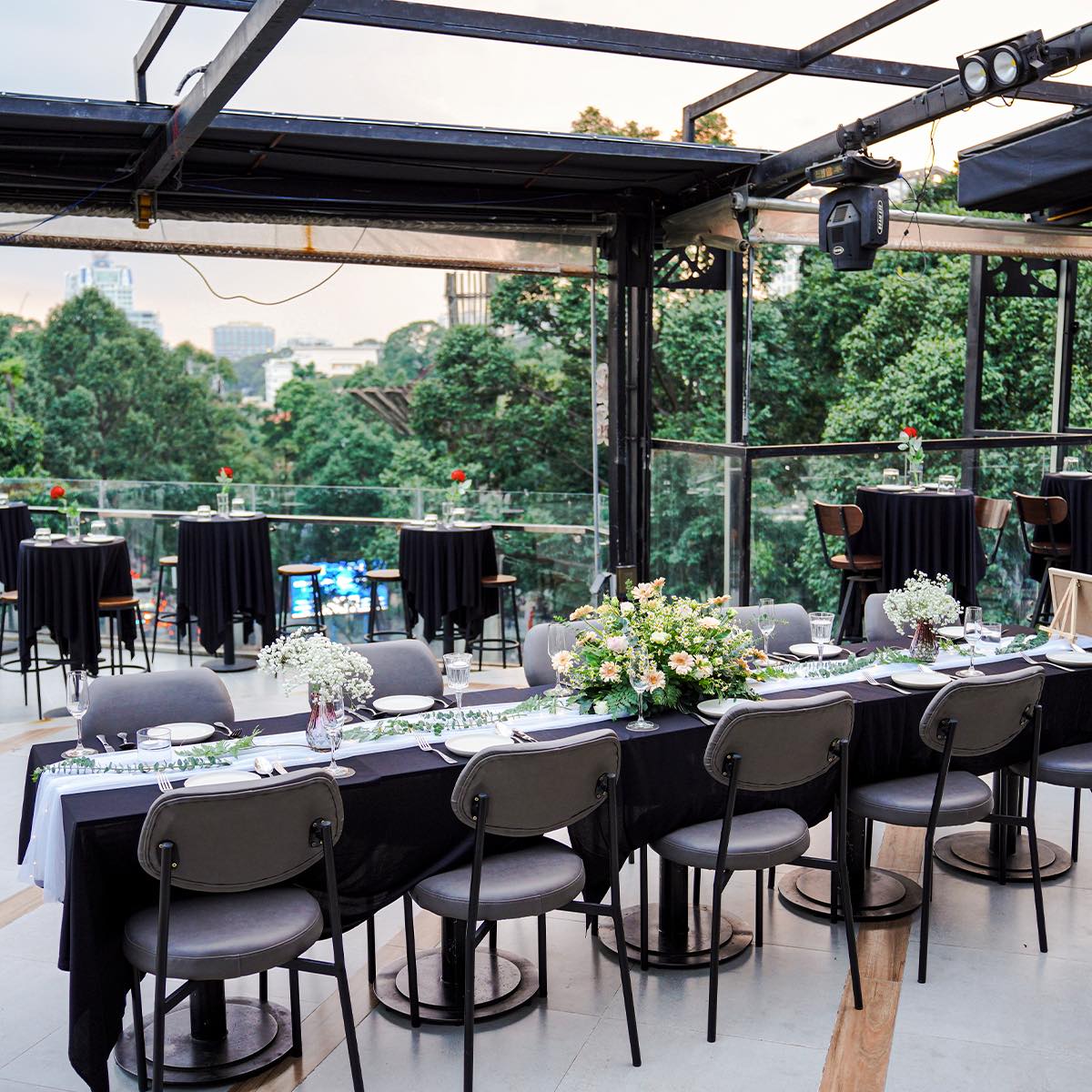 - Không gian rooftop thoáng đãng, sang trọng, với thiết kế mở giúp thực khách tận hưởng trọn vẹn khung cảnh thành phố về đêm.