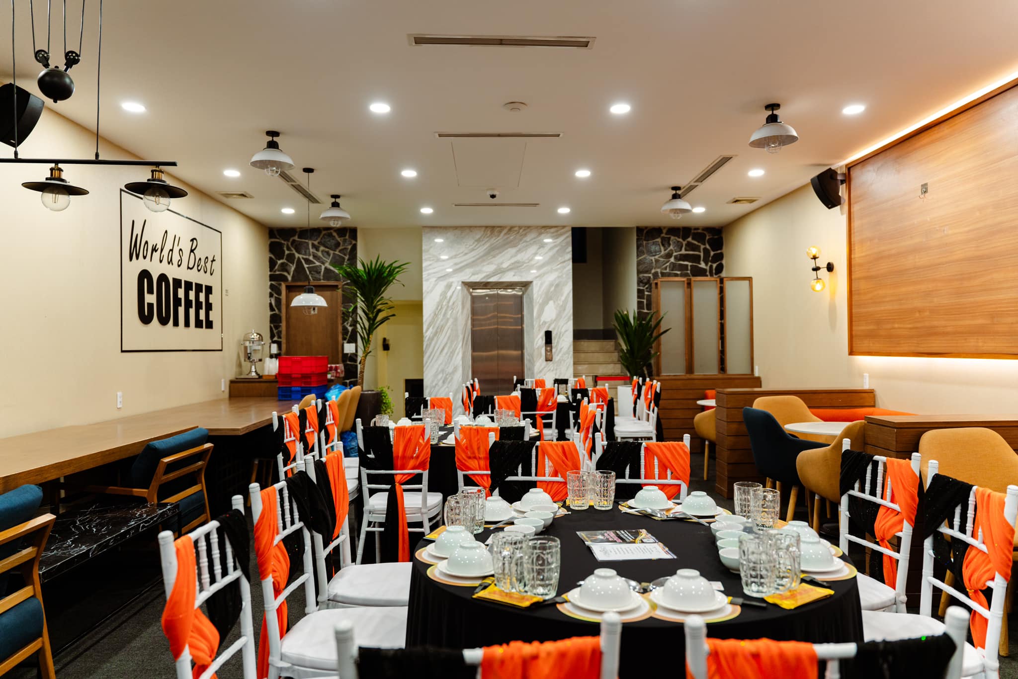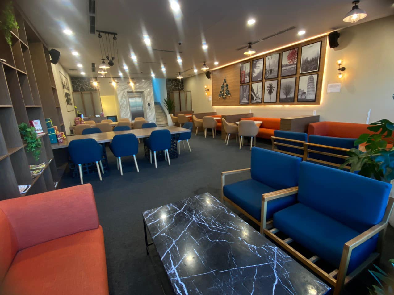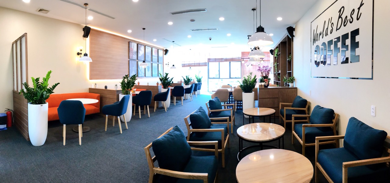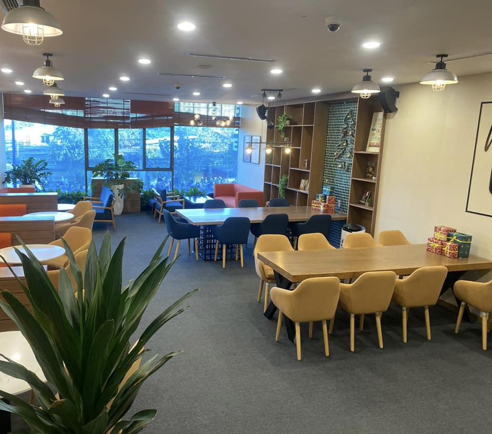 - Sức chứa lên đến 80 khách, với các khu vực ghế sofa thoải mái, bàn làm việc cá nhân và khu vực họp nhóm.