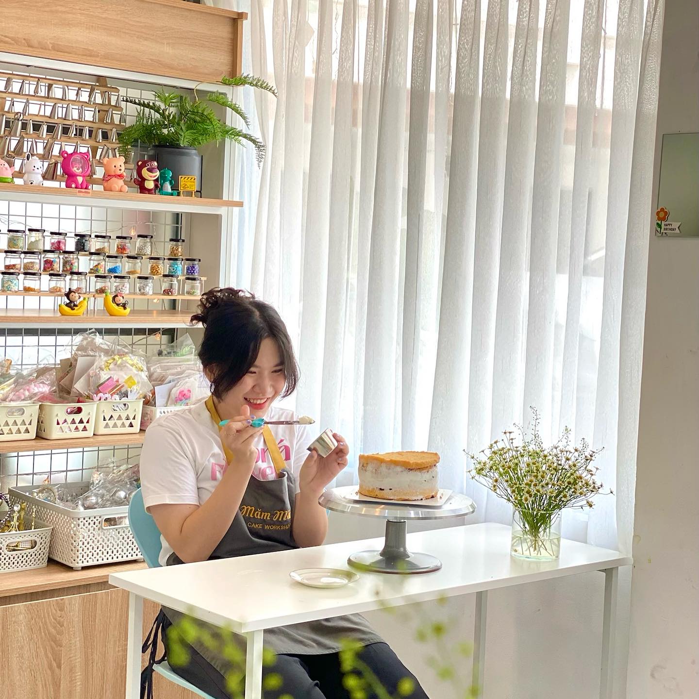 Măm Măm – Cake Workshop có không gian ấm cúng, rộng rãi, được thiết kế để mang đến trải nghiệm làm bánh thoải mái nhất: