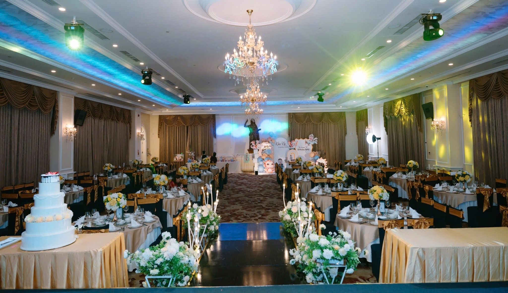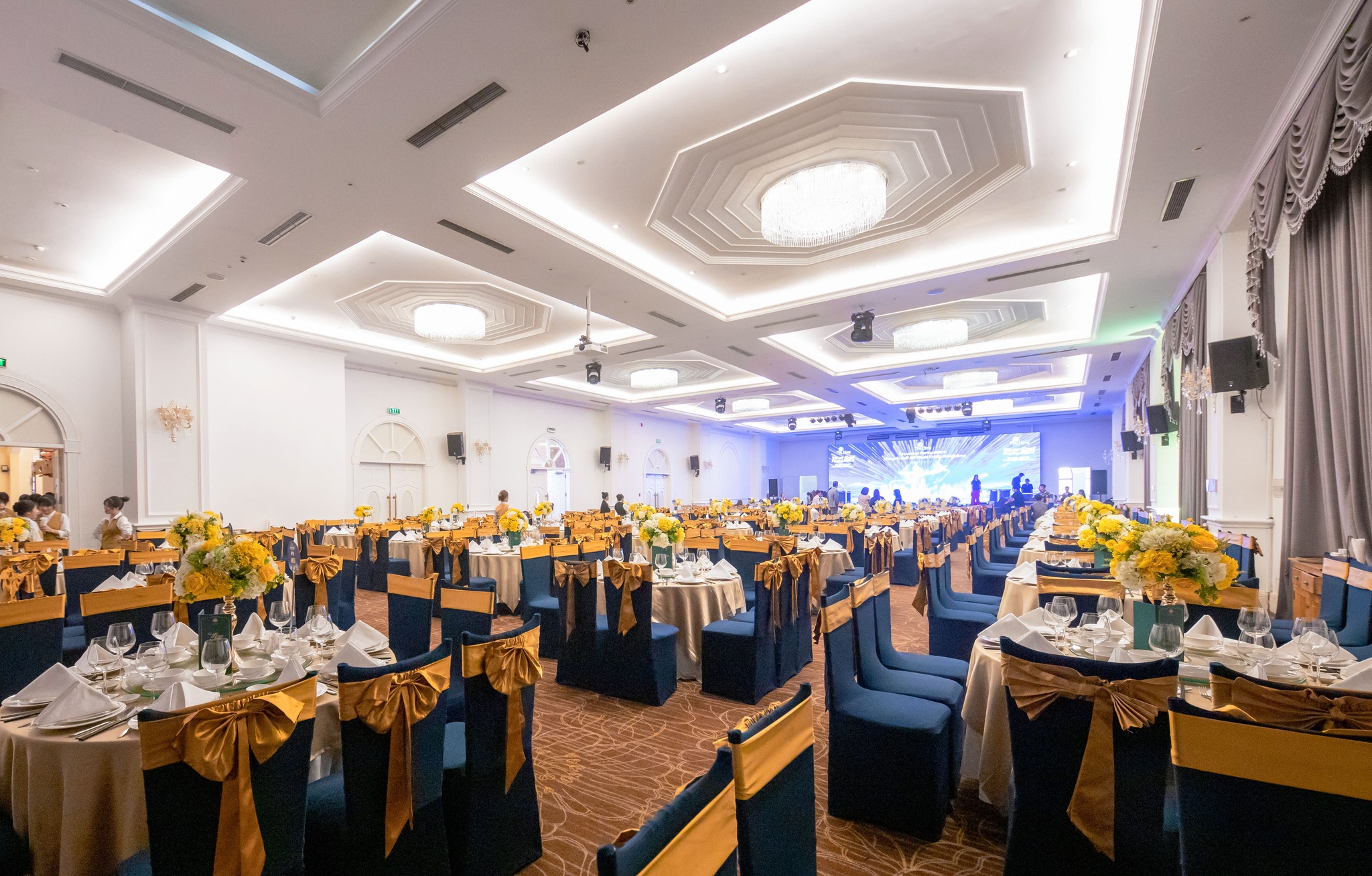 - Sức chứa lên đến 1.500 khách, gồm nhiều sảnh tiệc lớn nhỏ, phù hợp cho hội nghị, sự kiện doanh nghiệp và tiệc cưới hoành tráng.