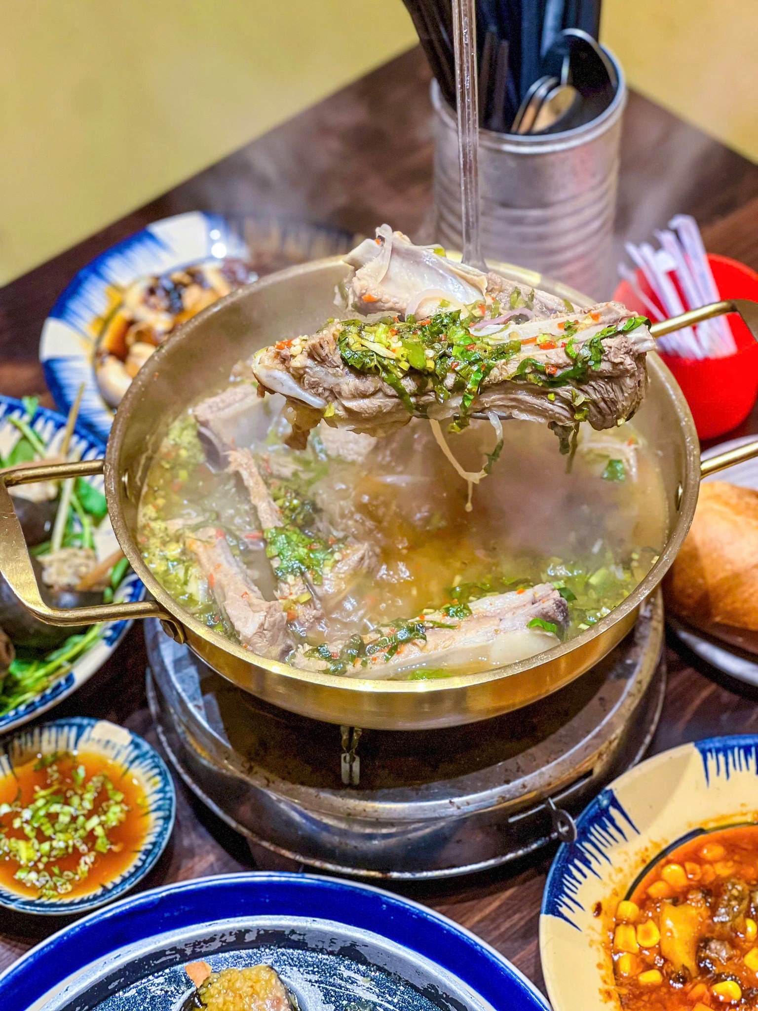 - Bàn ghế rộng rãi, khoảng cách thoải mái, giúp thực khách có không gian riêng tư khi thưởng thức món ăn.