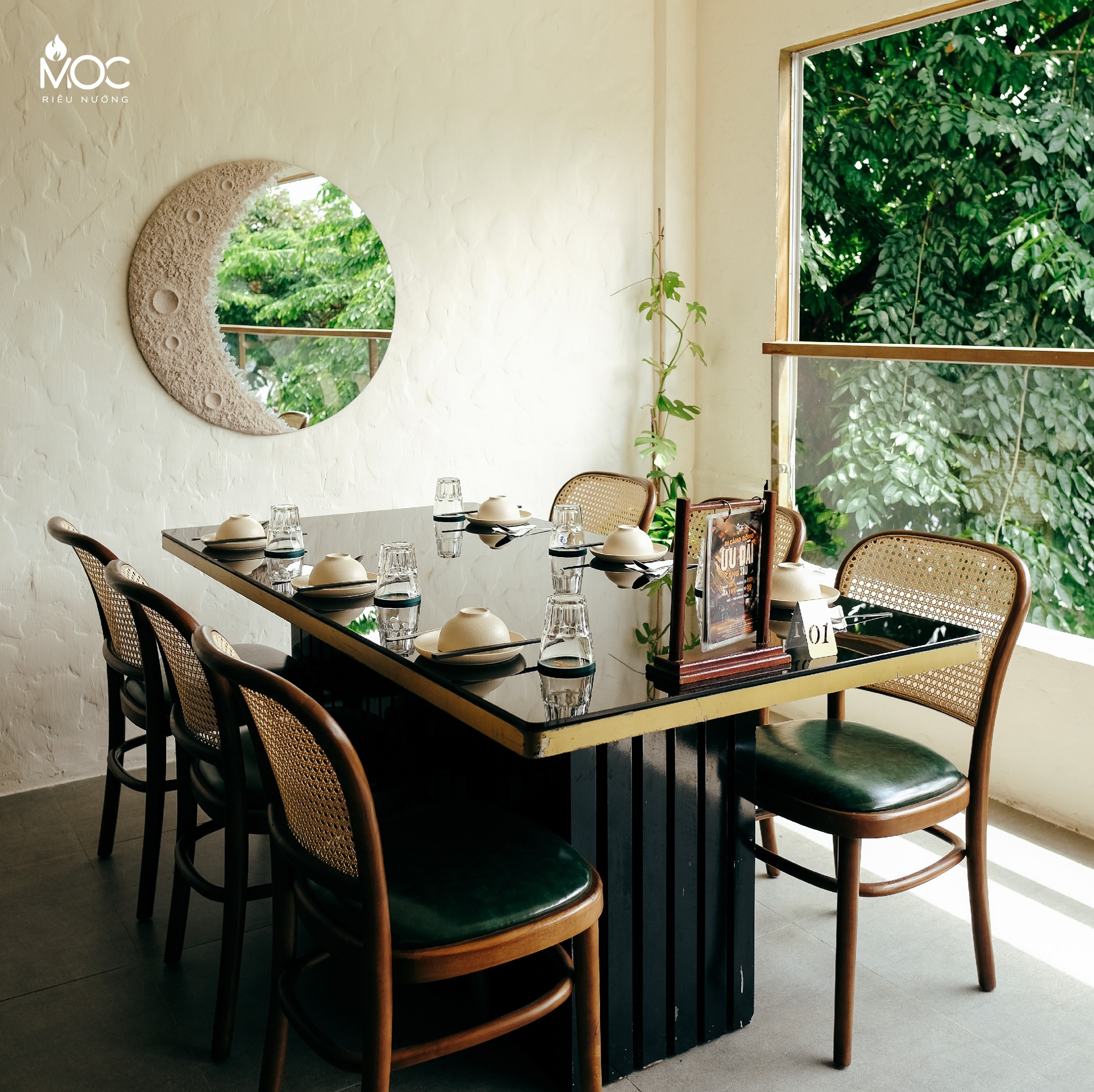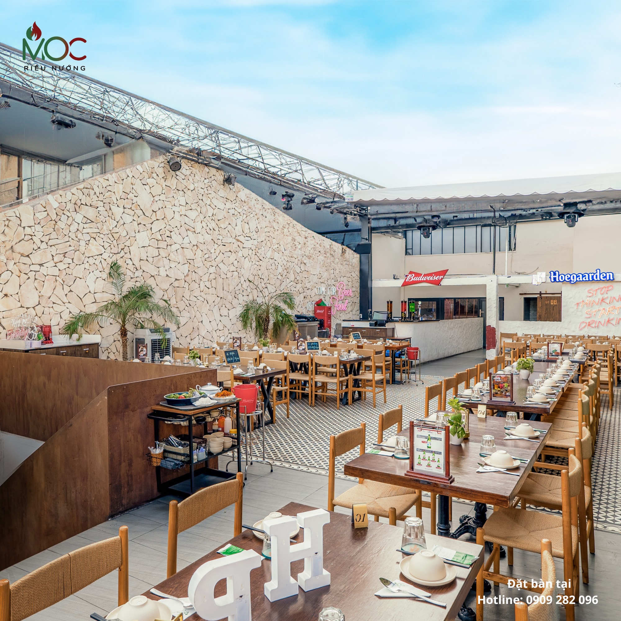 Mộc Riêu Nướng mang đến không gian ẩm thực sang trọng, kết hợp giữa phong cách hiện đại và nét mộc mạc, gần gũi. Với hai chi nhánh tọa lạc tại các vị trí trung tâm, nơi đây thu hút đông đảo thực khách từ mọi nơi.