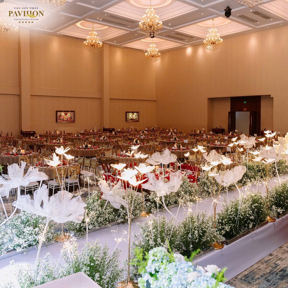 - Sức chứa lên đến 1.000 khách, với nhiều sảnh tiệc có diện tích đa dạng, phù hợp với mọi nhu cầu tổ chức sự kiện.