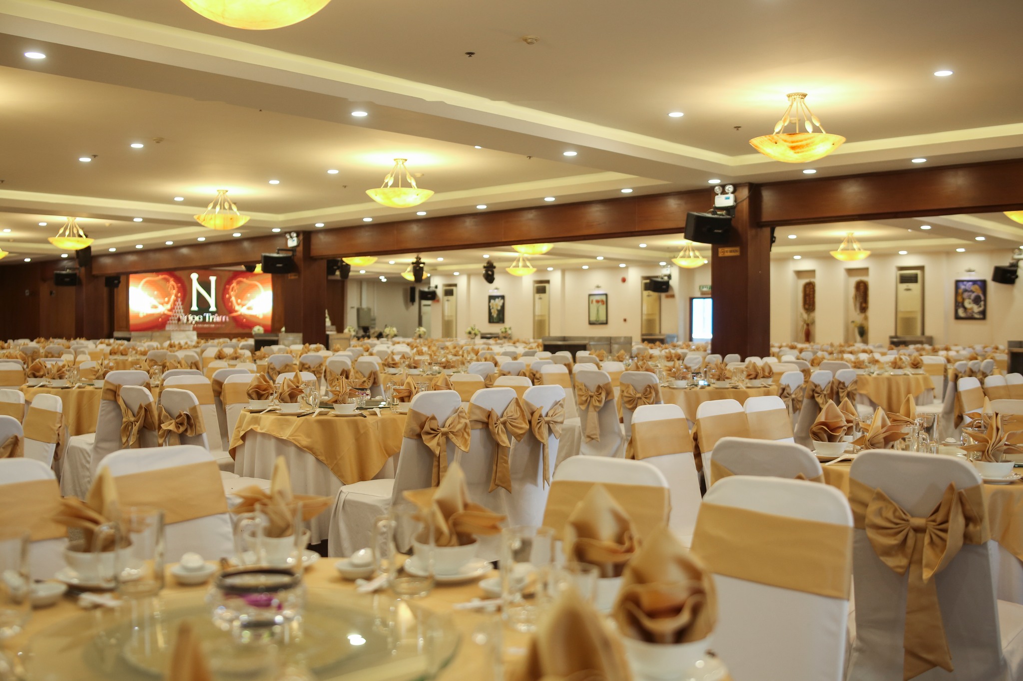 Nhà hàng có thể phục vụ từ 200 – 1.000 khách tùy vào quy mô sự kiện. Với cách bố trí linh hoạt, khách hàng có thể lựa chọn sảnh tiệc phù hợp cho tiệc cưới, hội nghị, sự kiện doanh nghiệp hoặc tiệc gia đình.