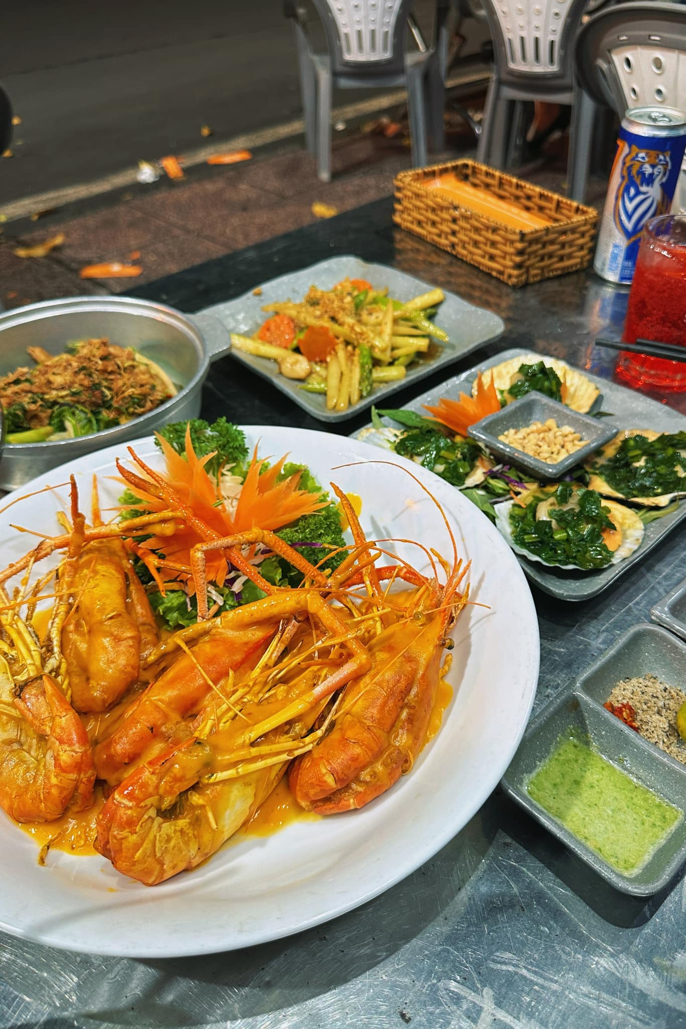 Thực đơn phong phú, với nhiều món ngon như ốc hương rang muối, càng ghẹ rang me, nghêu hấp sả, sò huyết cháy tỏi…