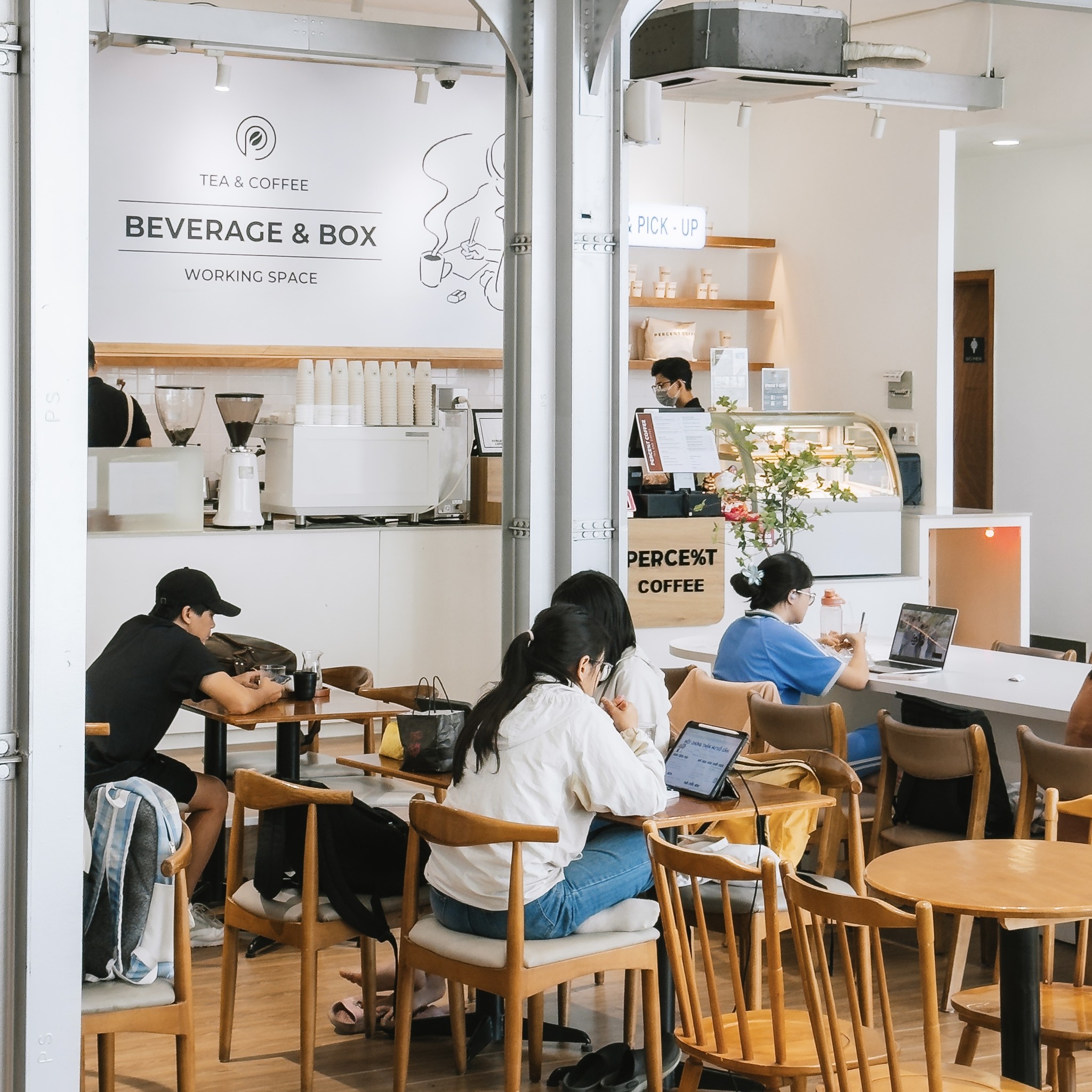 PERCE%T Coffee là chuỗi cà phê mang phong cách tối giản, hiện đại, thu hút những tín đồ yêu cà phê đích thực. Hiện thương hiệu có mặt tại 159 Phạm Ngũ Lão (Q1), 355 Lê Quang Định (Bình Thạnh) và 51 Núi Thành (Tân Bình), mỗi chi nhánh mang một nét đặc trưng riêng nhưng vẫn giữ trọn tinh thần chung: đề cao chất lượng cà phê, không gian thoải mái và dịch vụ chuyên nghiệp.
