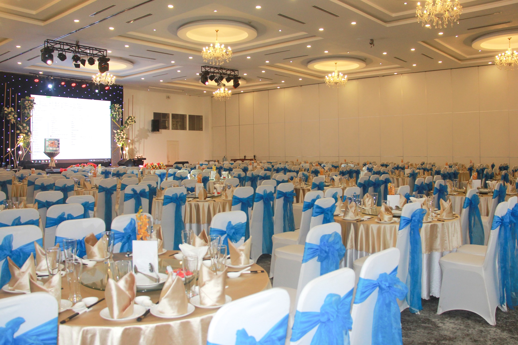 • Hệ thống sảnh tiệc đa dạng với phong cách thiết kế sang trọng, phù hợp với nhiều loại sự kiện.