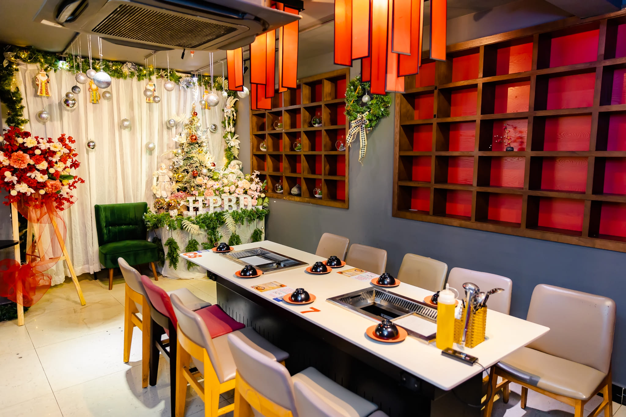 - Sức chứa 100-120 khách, phù hợp họp mặt gia đình, tiệc sinh nhật, liên hoan công ty.
