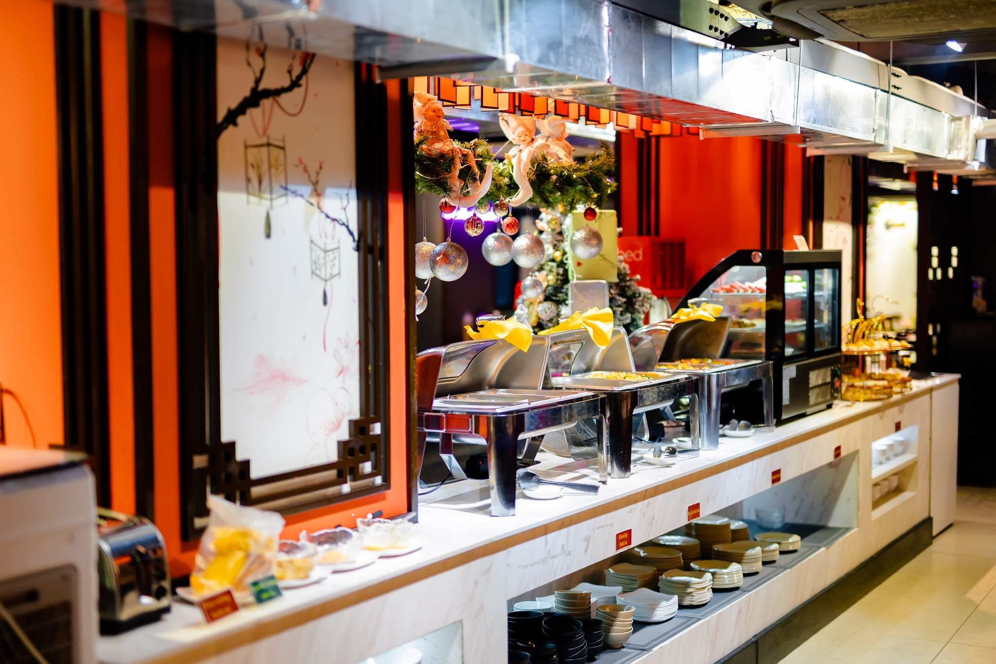 - Thiết kế sang trọng, đậm chất Trung Hoa, với đèn lồng, tranh thủy mặc, nội thất gỗ ấm cúng.
