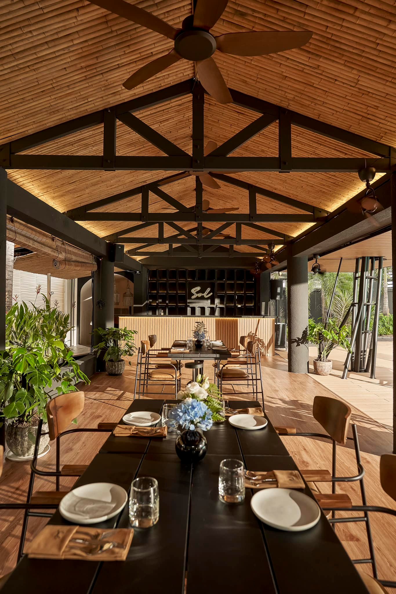 Sol Kitchen & Bar tọa lạc tại một vị trí sôi động trên đường Huỳnh Tấn Phát. Nhà hàng này sở hữu không gian hiện đại với lối thiết kế mang phong cách nhiệt đới kết hợp với kiến trúc tân thời, giúp khách hàng cảm thấy dễ chịu và thoải mái. Sol có không gian mở với nhiều cây xanh bao quanh, tạo cảm giác gần gũi với thiên nhiên. Nhà hàng có sức chứa lên đến 150 người, lý tưởng cho các buổi tiệc họp mặt, sinh nhật, hay những buổi hẹn hò riêng tư.