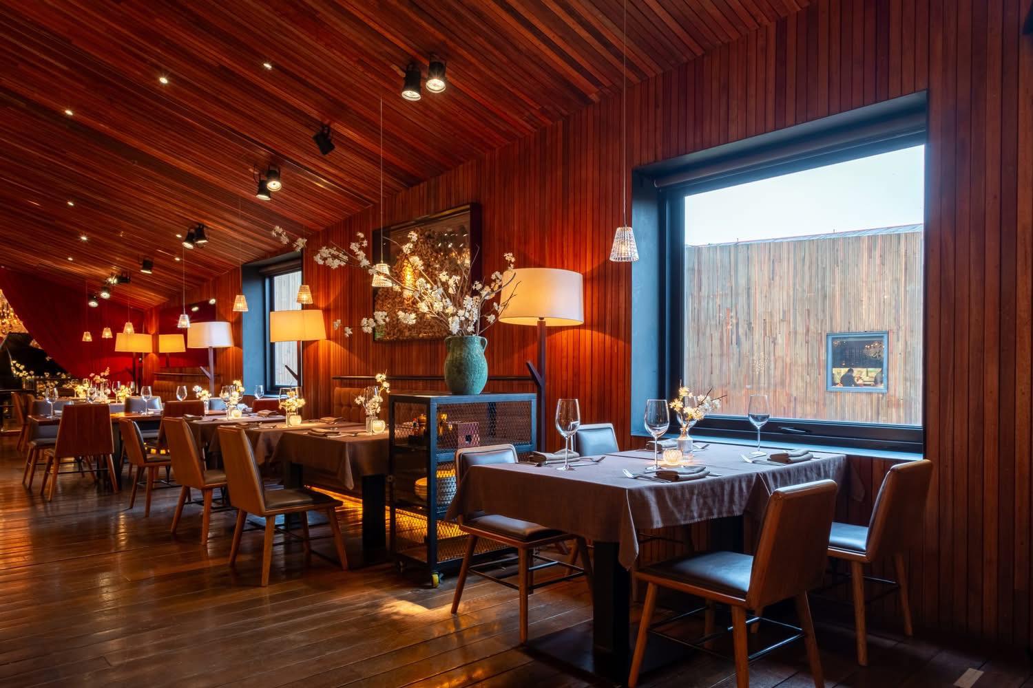 Thiết kế ấn tượng: Không gian nhà hàng lấy cảm hứng từ những căn nhà gỗ ấm áp, kết hợp ánh sáng nhẹ nhàng tạo nên không gian sang trọng, riêng tư.