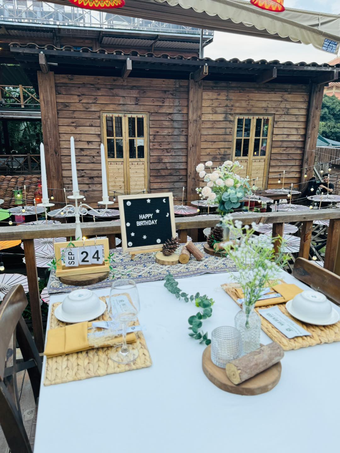 - Không gian được trang trí với chất liệu tự nhiên, mang lại cảm giác như đang tận hưởng bữa tiệc nướng giữa núi rừng Tây Bắc.