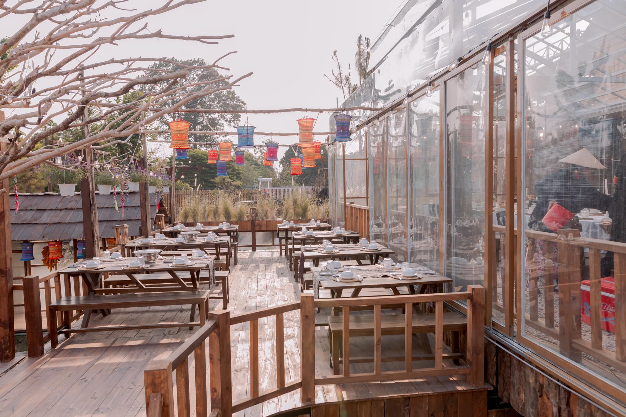 - Không gian mở thoáng đãng, thiết kế theo phong cách Tây Bắc với những chiếc bàn gỗ mộc, ánh đèn vàng ấm cúng, tạo cảm giác gần gũi, thân thiện.