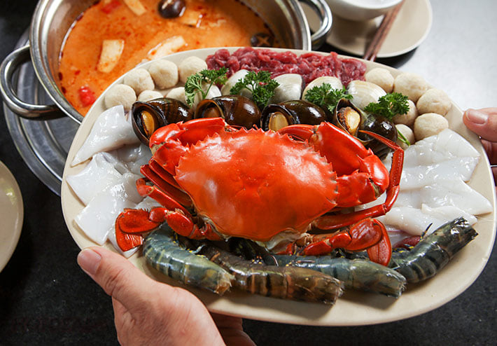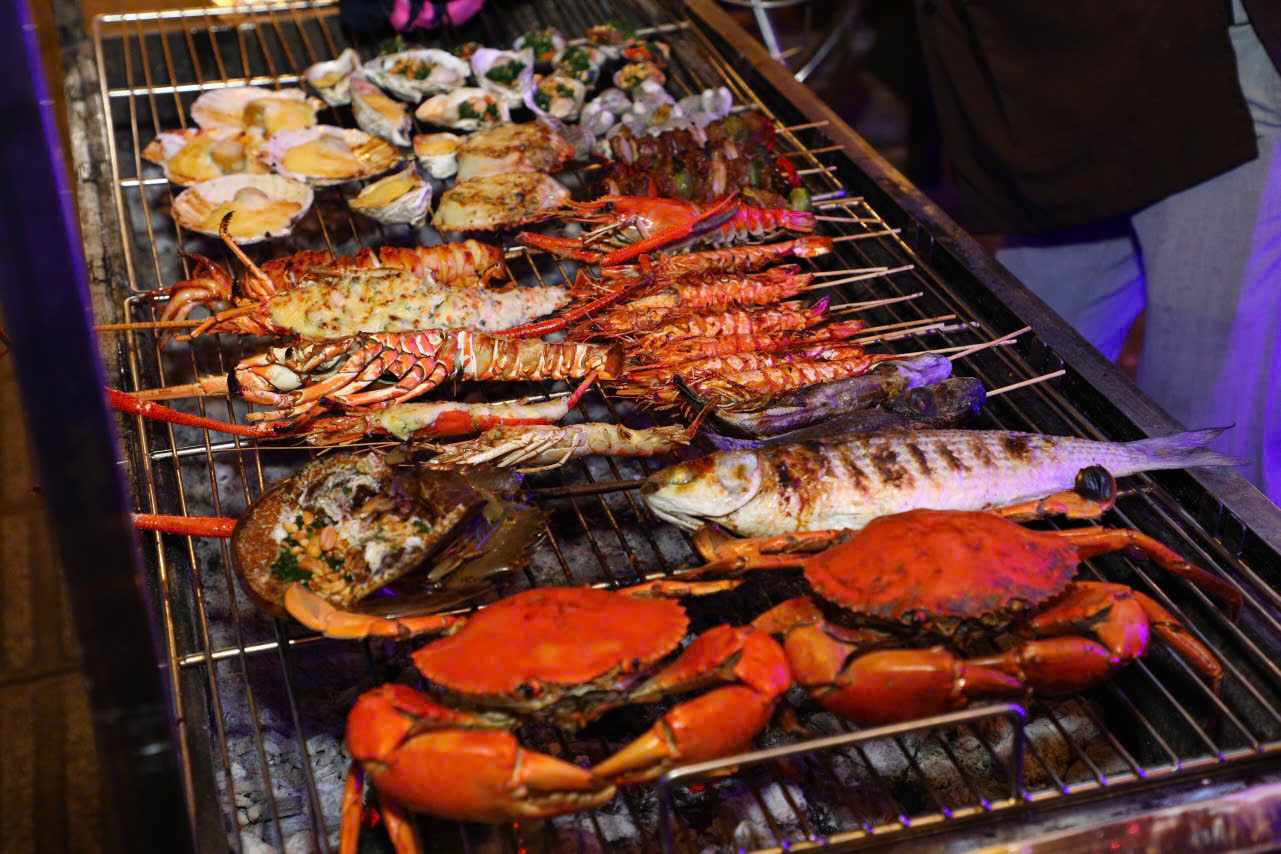 ✔️ Hải sản phong phú, ngoài cua còn có tôm sú, ghẹ, ốc hương, hàu nướng phô mai…
